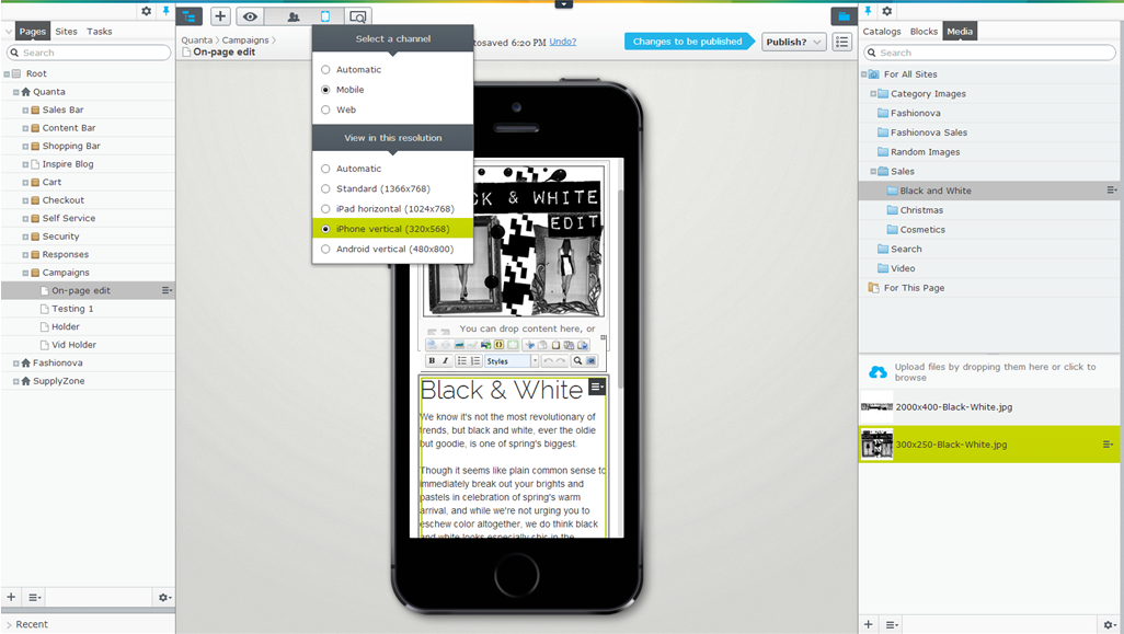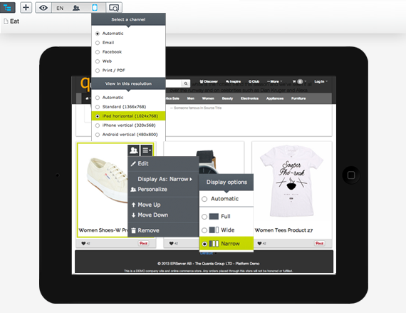 At the majority of our customers, marketers and merchandisers use EPiServer Commerce on a daily basis. They trade their product range, optimizing how and where products are displayed. They create campaigns and landing pages to increase sales. This new release of EPiServer Commerce brings the business user experience for these users together into consistent and enjoyable experience enabling to perform their daily tasks in less time. Taking cues from CMS 7, every piece of content and product is automatically optimized on the page and across PC, mobile and tablet. Whether you create your landing page from mobile or PC view, the experience across the screens will always be consistent, giving you the option to go mobile first.