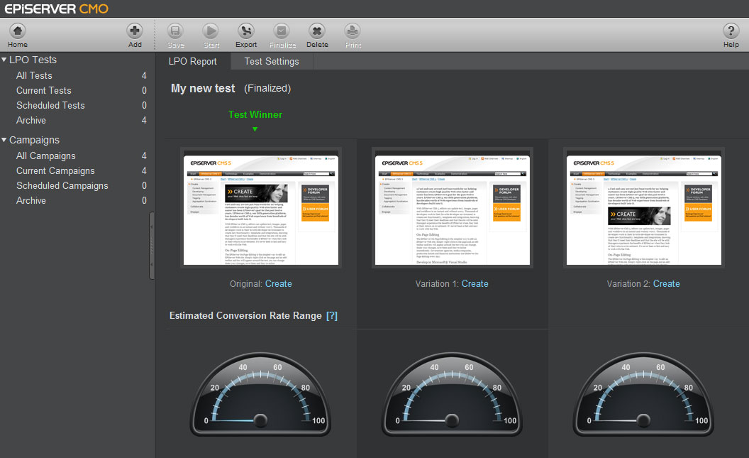 Because they are inside the CMS, it is incredibly easy to create your testing and tracking plan at the same time that you create your campaigns. In short, EPiServer CMO is campaign tracking and testing with the benefits of being simple, integrated and real-time.