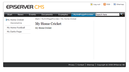 View the results - XMLPageProvider is now integrated with EPiServer