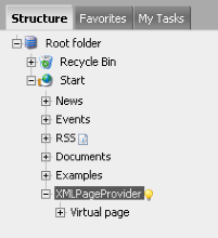 Insert a page provider node in the site's page tree - we have named the page MyXMLPageProvider. This is the entry point for the XMLPageProvider - observe that it is and must be empty to begin with. Note that the Page ID is given as the value for the entryPoint attribute in the Web.config. The entryPoint attribute specifies which existing page in EPiServer is the root for the pages served by the page provider instance.