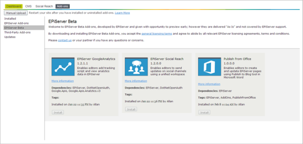 To get started, first install "Publish from Office" from the EPiServer Add-on Store inside the EPiServer platform: