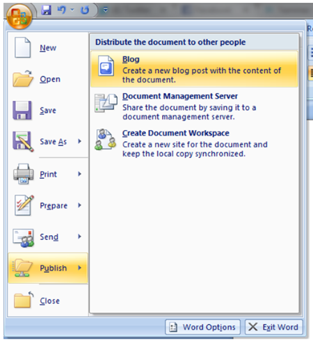 Finally, when you are ready to publish your document - just use the Word option Publish as Blog.