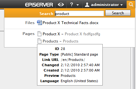 With OnlineCenter we introduce a sophisticated search function which allows you to search through content in all of the integrated products of your site. You can search for both pages and files, and it is also possible to personalize the search for different modules on your site.