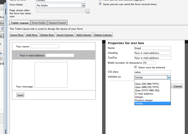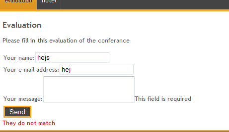 I recently got a question from a partner if it is possible to add validation to check if two fields are equal to each other. The scenario was that a user is asked for their email address and then asked to confirm it. I have already blogged about how to add a simple regular expression validation but this requires a bit more code but not much. Anders Hattestad wrote a great blog post on how to extend XForms and with the help of his blog post I got my validation working.