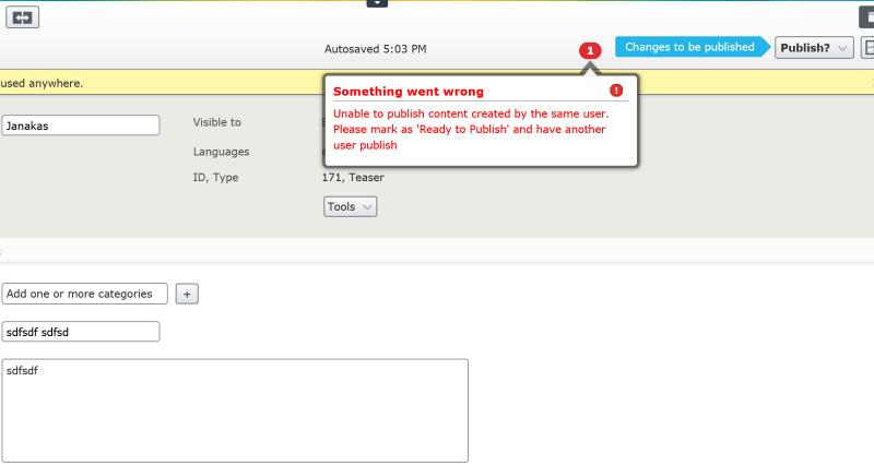 Let’s say the customer use case is they wanted someone other than the content Creator to be able to publish. For example, I can publish your work but not my own.