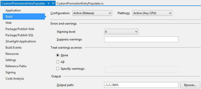 - Add one class file (.cs) and name it “CustomPromotionEntryPopulate”.