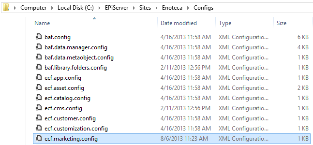 1: <?xml version="1.0"?>2: <Marketing>3: <Connection connectionStringName="EcfSqlConnection" />4: <Cache enabled="true" promotionTimeout="0:1:0" campaignTimeout="0:1:0" policyTimeout="0:1:0" segmentTimeout="0:1:0" expressionTimeout="0:1:0" />5: <MappedTypes>6: <ExpressionValidatorType name="Mediachase.Commerce.Marketing.Validators.RulesExprValidator,Mediachase.Commerce.Marketing.Validators" />7: <!-- <PromotionEntryPopulateFunctionType name="Mediachase.Commerce.Marketing.Validators.PromotionEntryPopulate,Mediachase.Commerce.Marketing.Validators" /> -->8: <PromotionEntryPopulateFunctionType name="EPiServer.Commerce.Addons.Promotions.CustomPromotionEntryPopulate, EPiServer.Commerce.Addons.Promotions" />9: </MappedTypes>10: <Roles />11: </Marketing>