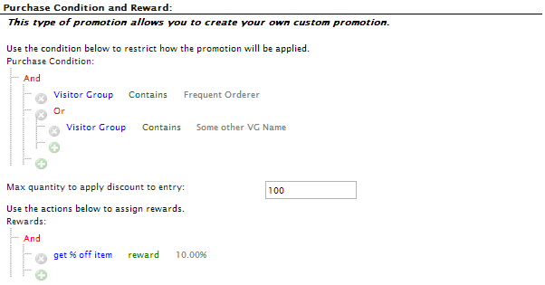 - The important part as it relates to this blog is the “Purchase Condition and Reward” section. When you select the Purchase Condition you should now see “Visitor Group” listed as an option. Select this.