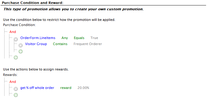 - The important part as it relates to this blog is the “Purchase Condition and Reward” section. In the first statement select “OrderForm.LineItems”.