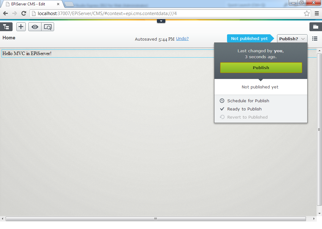 - Navigate to http://localhost:<port>/EPiServer/CMS