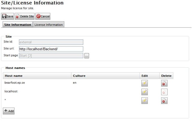 On the “Site Information” tab it is possible to manage which hostnames, ports (and optionally languages) that should be associated with the site. In CMS5 this had to be done directly in the web.config file.