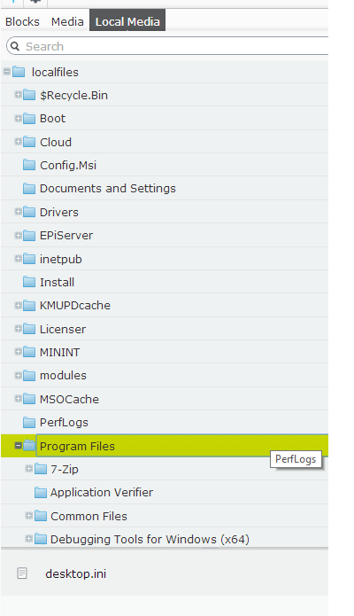 To test this new service I built a custom content provider called LocalMediaProvider. The idea is that it maps a local file system (like your harddrive) into the asset gadget in EPiServer CMS. It’s similar to the VirtualPathNativeProvider that existed in previous versions of EPiServer.