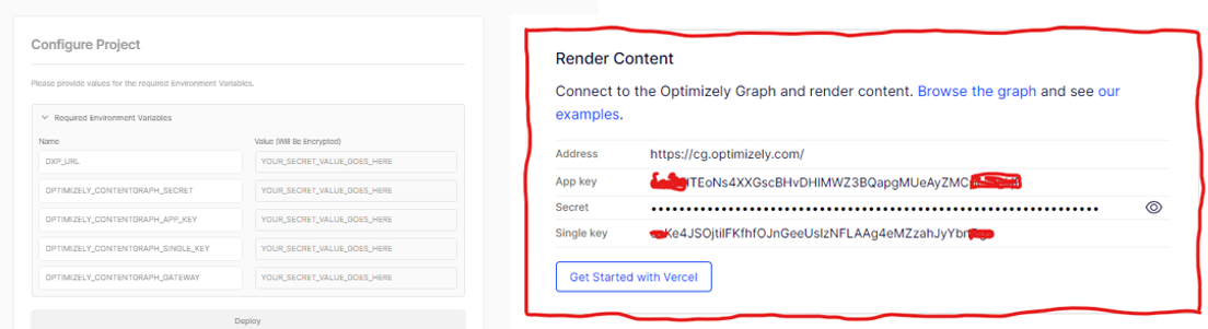 When configuring the project you will need to populate some of the Optimizely Graph Security Tokens and DXP URL, these can be found in the Dashboard tab within Optimizely and the DXP URL will be the domain address you see in CMS e.g. https://app-ocxcxxxx122w0uprod.cms.optimizely.com/