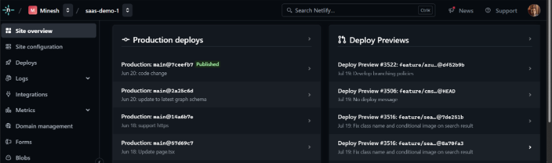 A similar process was replicated on Netlify with very few changes to the frontend code or configuration.
