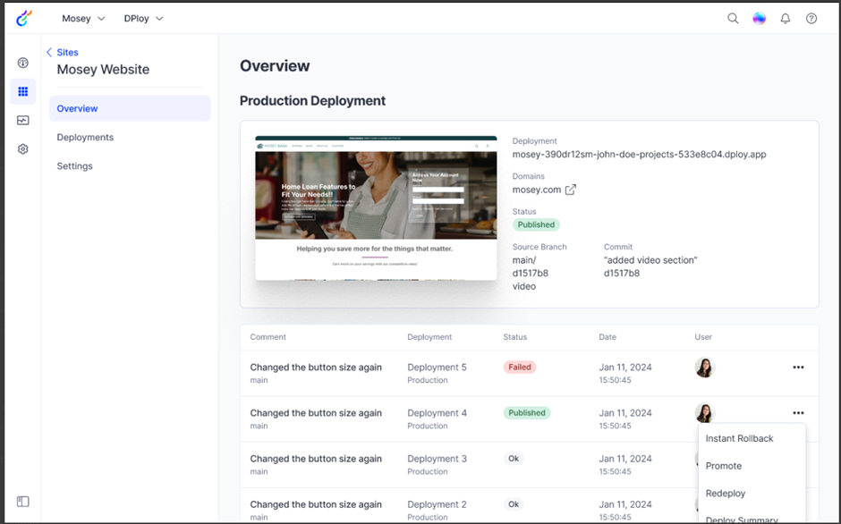 Can I get alerts if a deploy fails or performance drops?