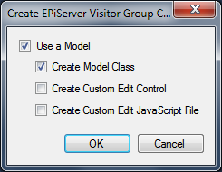 And last but not least, for a Visitor Group Criterion, you get options to create a model class, a custom Editor and a Dojo based Javascript file (for the custom Editor):