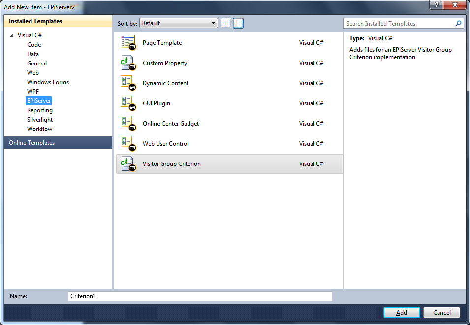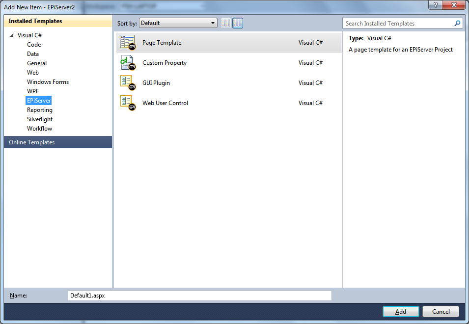 Once this is installed, you get not only a new EPiServer Project type but also EPiServer components that can be created using the Add New Item menu: