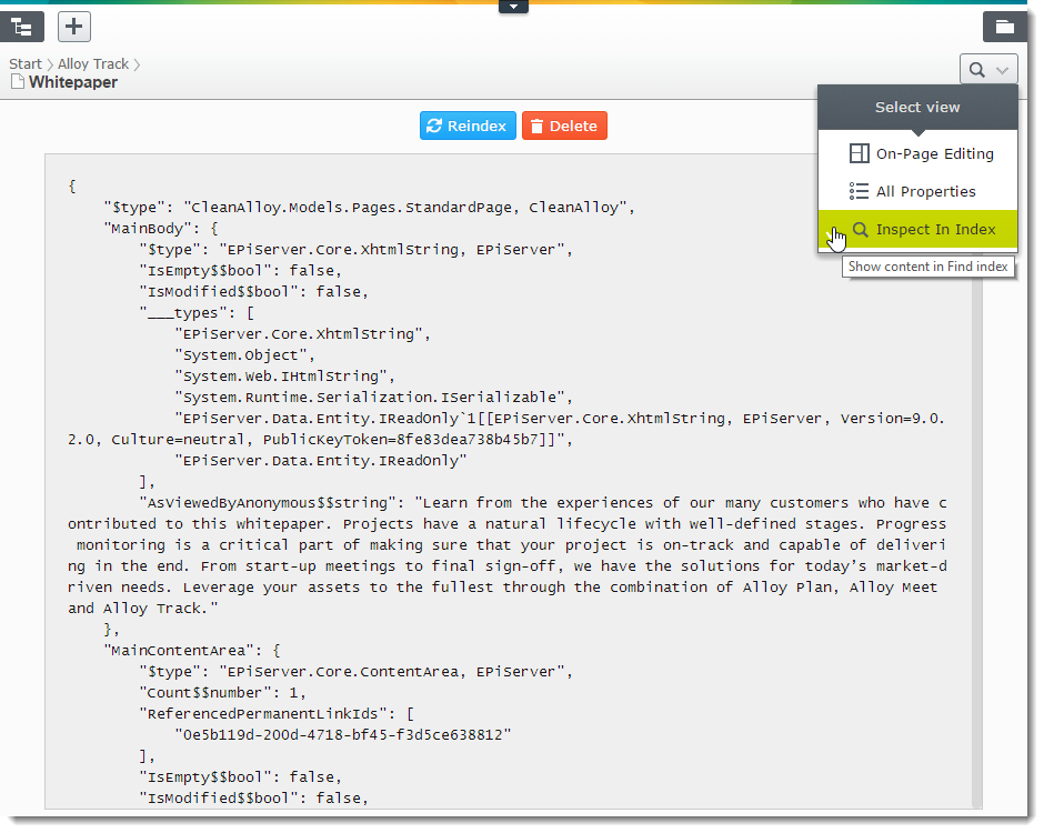 I’ve uploaded a new version of EPiCode.InspectInIndex to the EPiServer Nuget feed. If you have not heard of InspectInIndex before, you should check out my previous blog post. The new version contains a few bug fixes, including a recurring JavaScript error. In addition, the module has been upgraded to EPiServer 9.