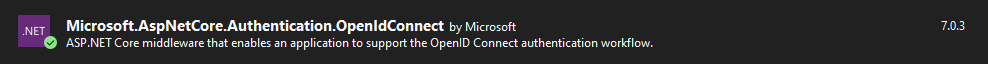 Before we start with the implementation we first need to add a reference to the Microsoft.AspNetCore.Authentication.OpenIdConnect NuGet package, this allows us to use OpenIdConnect for our implementation with Identity Server 4. The official documentation describes OpenID Connect as:
