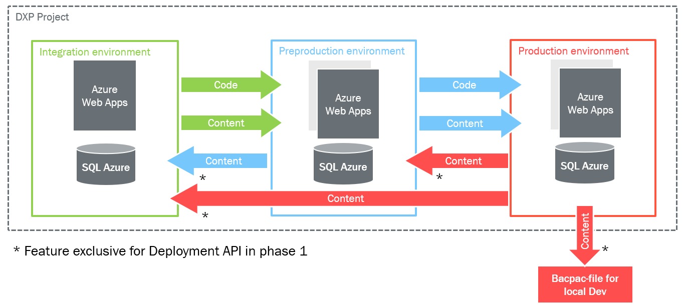 The API now supports triggering content syncdown (copying of DBs and/or blobs) from the Production environment to Preproduction/Integration. If you're using the EpiCloud PowerShell module, you can use the Start-EpiDeployment cmdlet with the IncludeDb and IncludeBlob parameters to start a content syncdown. - DB export (bacpac)