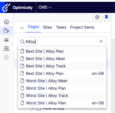 In a multisite setup using Optimizely CMS, searching for pages can be confusing. The default CMS search regardless of search provider does not clearly indicate which site a given result belongs to—especially when you have identical page names across multiple sites.