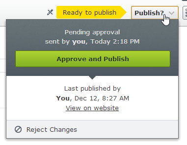 If you select “Ready to Publish,” the Draft Version’s status becomes “Ready to Publish.” It is locked for editing, and editors with publish rights on that content will be allowed to approve or reject it via the interface discussed below.