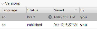 A Draft Version is a version of content which is not published yet. Either the content has never been published, or it’s a copy of the published version that you are currently editing. (In CMS6 and earlier, the status of the Draft Version was “Not Ready.”)