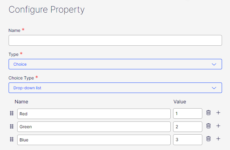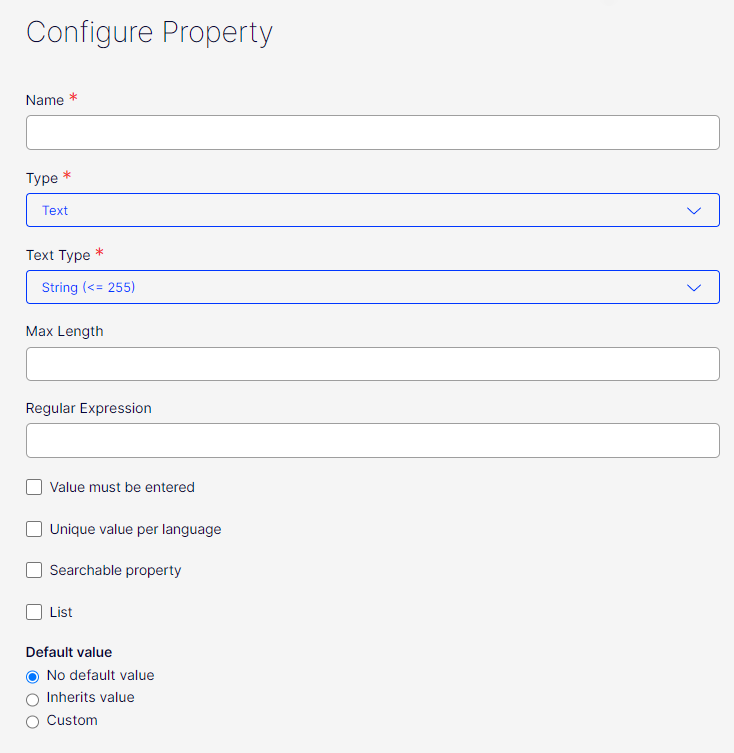 On the properties edit form, we now allow to configure some of the custom property settings.