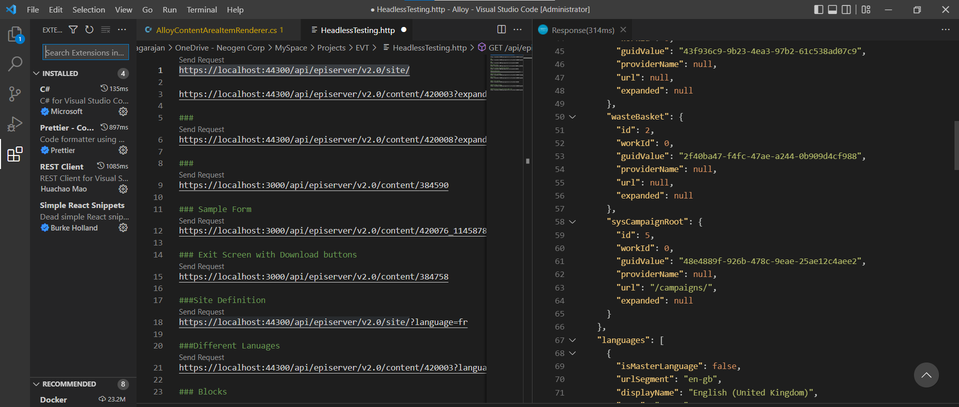 If you see your solution is working fine, then you can test Content Delivery API by accessing a site content with the help of Visual Studio Code(I feel it's a very feasible tool to access Headless content), In case if you don't have a REST Client in your Visual Studio Code please install the below Extension, It's really useful during our Headless implementation to test content.