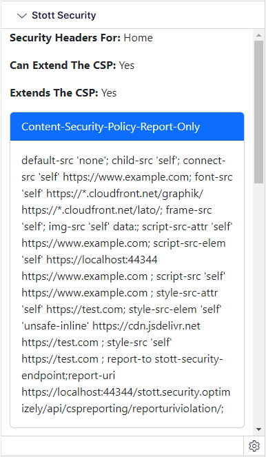 In the gadget I developed for Stott Security, I focus exclusively on rendering a preview of the security headers for the currently selected page. I added this feature as Stott Security supports extending the Content Security Policy for any given page. To ensure the user can be clear on the context for the header preview, I load the page using the same helper method and add it to the view model for my Gadget.
