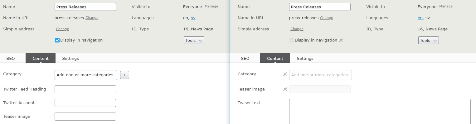 And there we have it, an alloy site with the fields to set up a twitter feed on the EN site but not on the SV site.