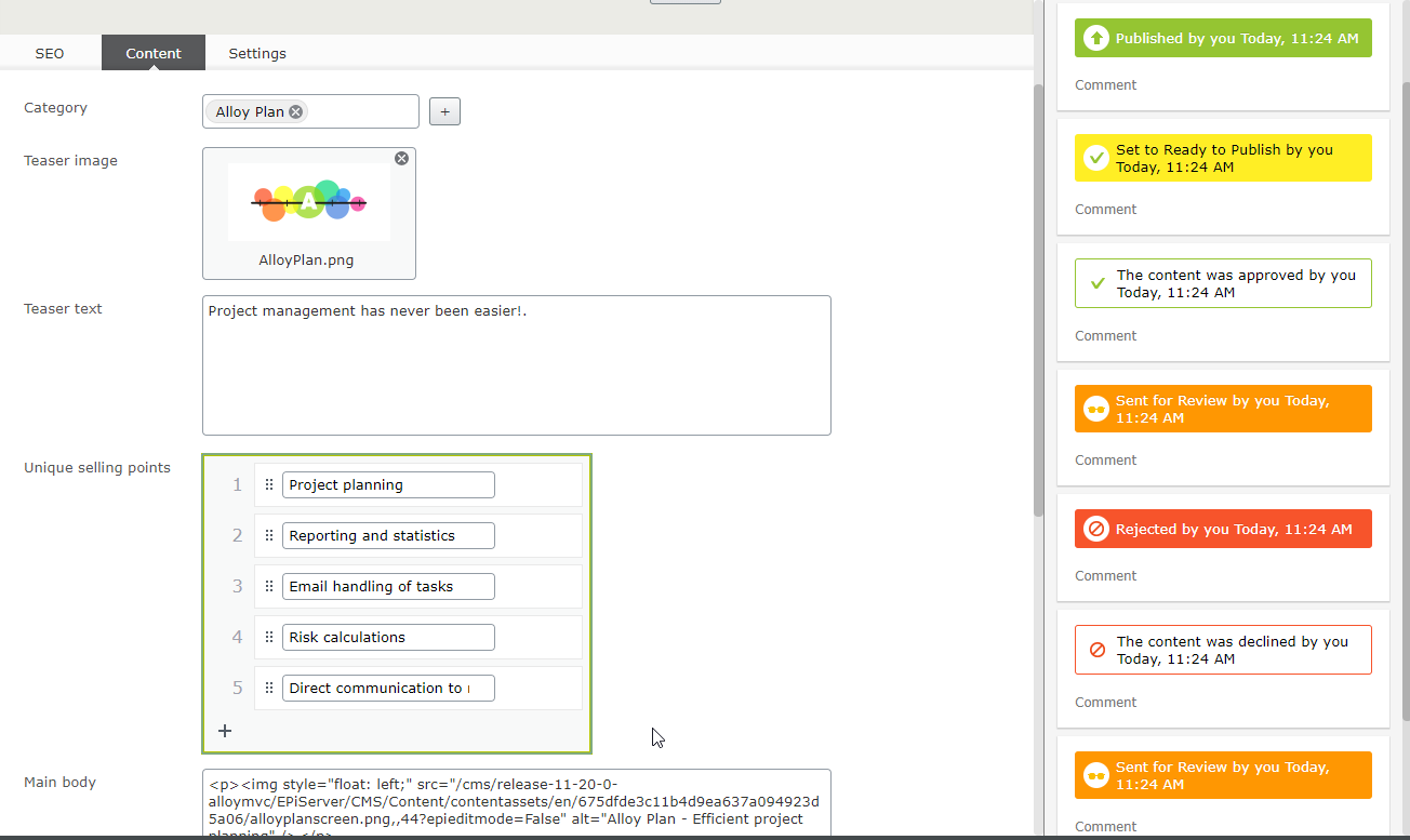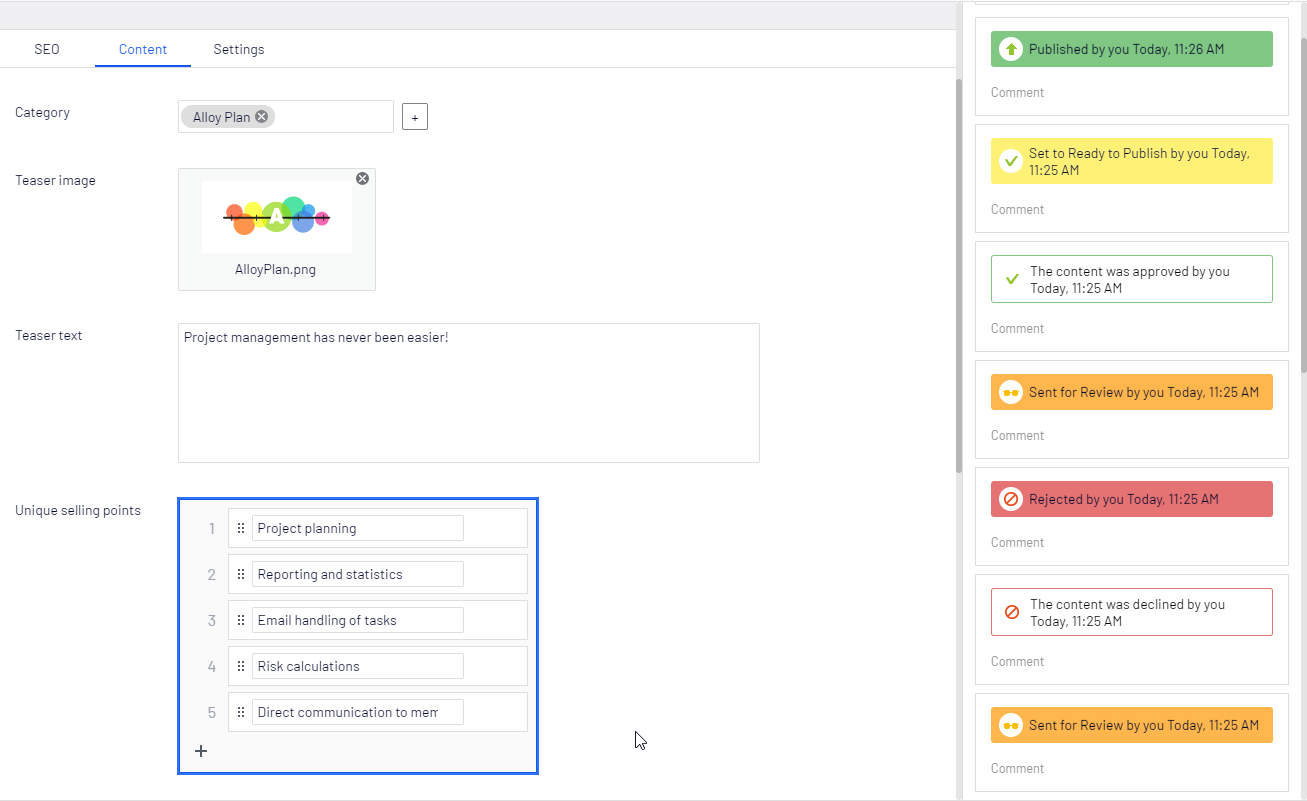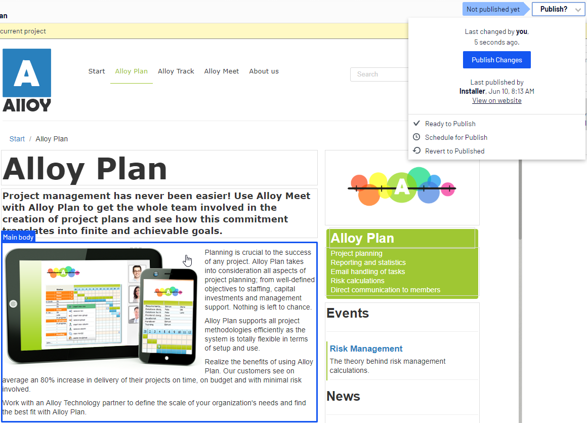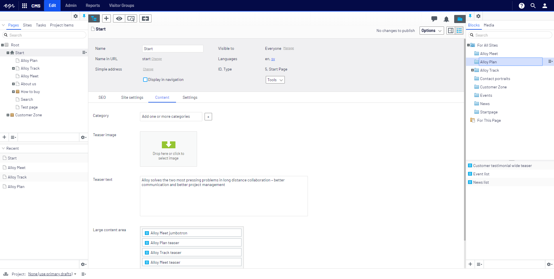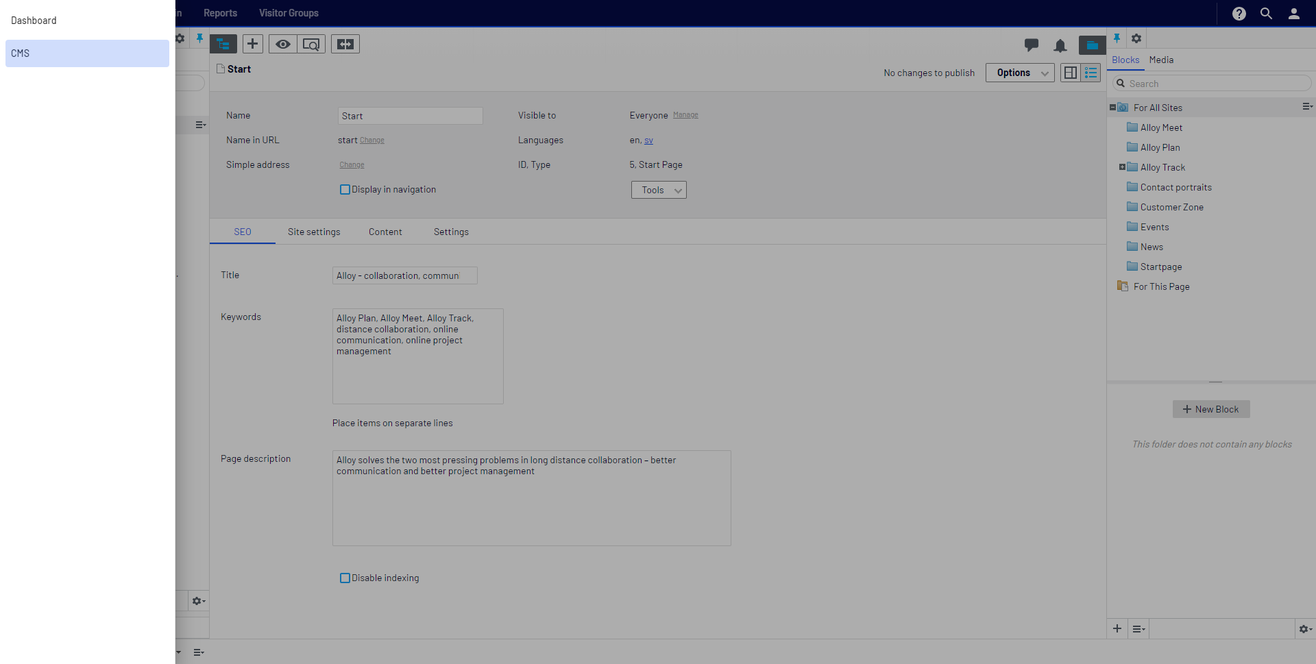 Our first change was to completely redesign CMS UI navigation. This modern navigation takes up less screen space by moving product navigation into a waffle menu in the top left that opens a drawer.