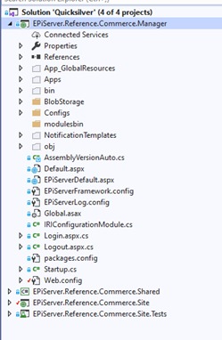 - Goto the EPiServer.Reference.Commerce.Manager site and expand all folder and open the folder.\