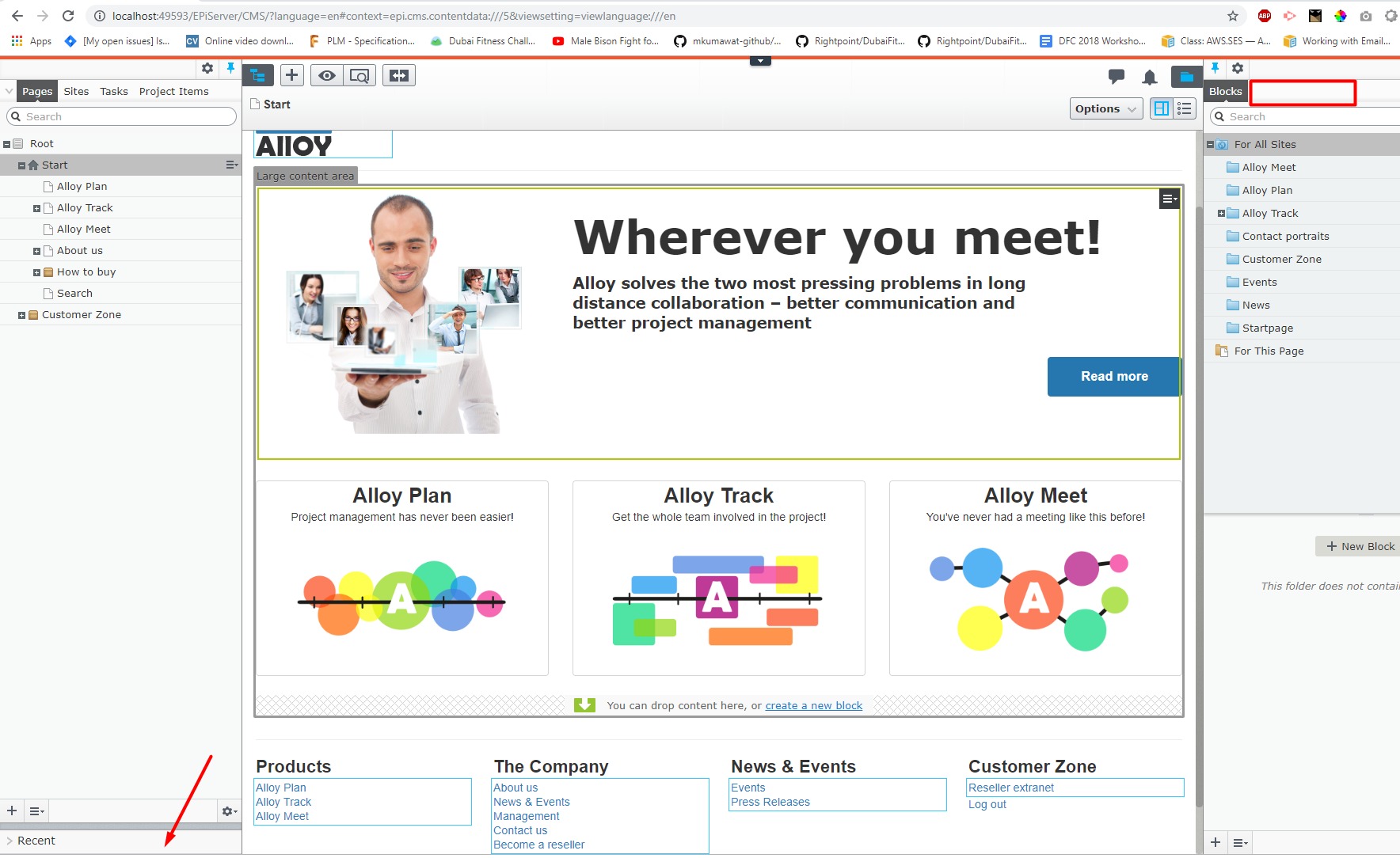 When you run your application, You can see the users with Role CmsApprover have two gadgets ProjectToolbar and MediaToolbar hidden for them. I've highlighted them below where they should have been appeared with non CmsApprover roles.