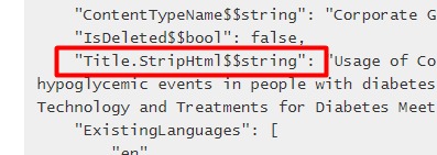 This will include field to find index with the key - Title.StripHtml$$string and this is the key that would do our job done.