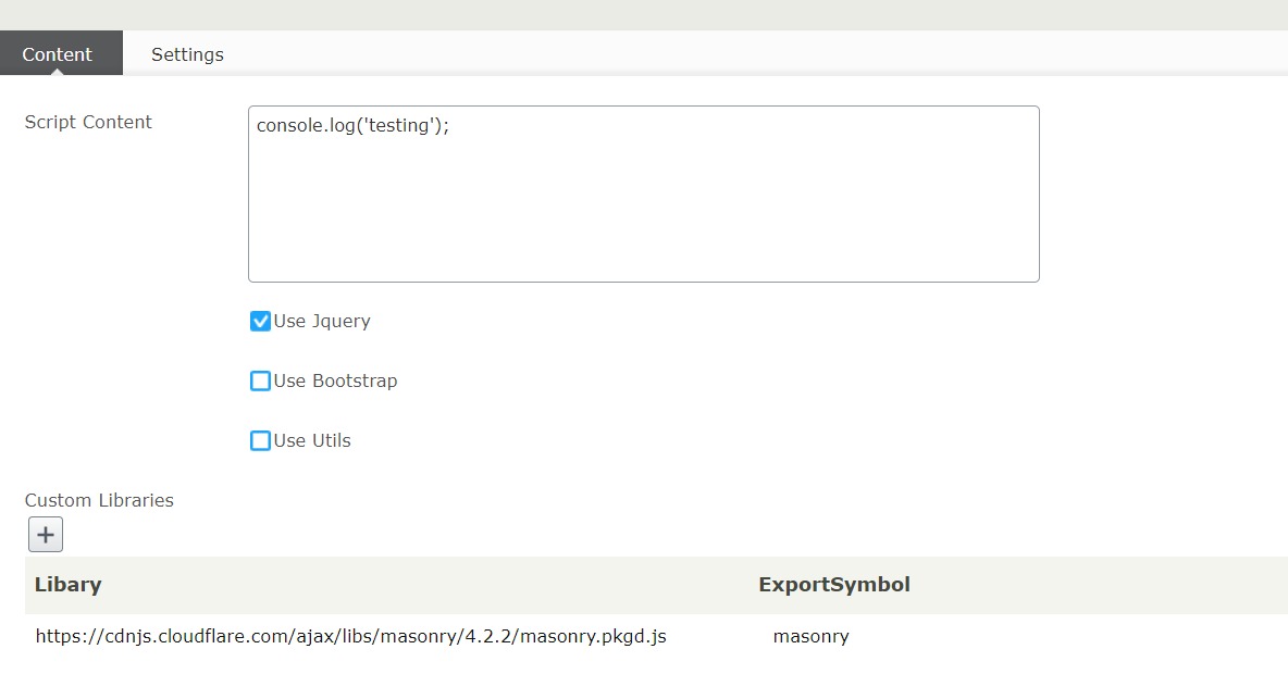Note that Custom Libraries would open a popup with 2 properties, first with path and the other one is the export symbol.