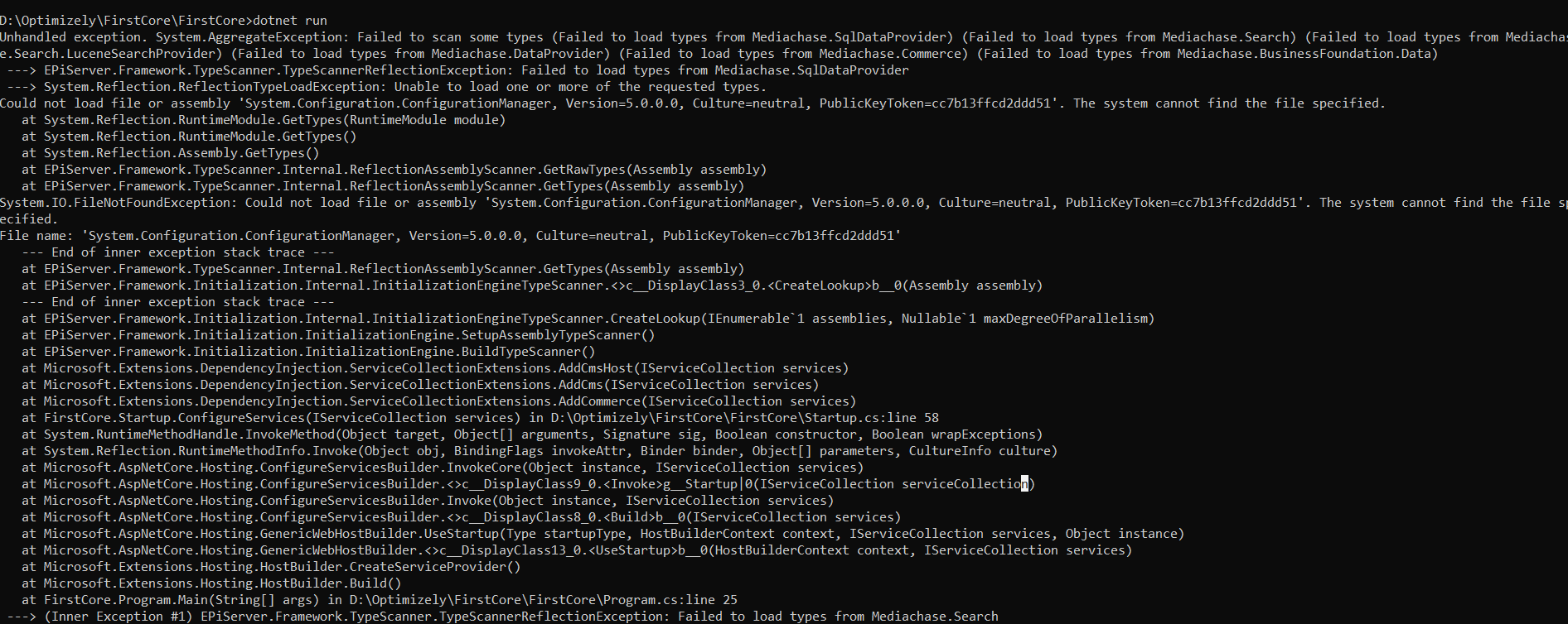 dotnet add "[PROJECTNAME].csproj" package System.Configuration.ConfigurationManager -v 5.0.0