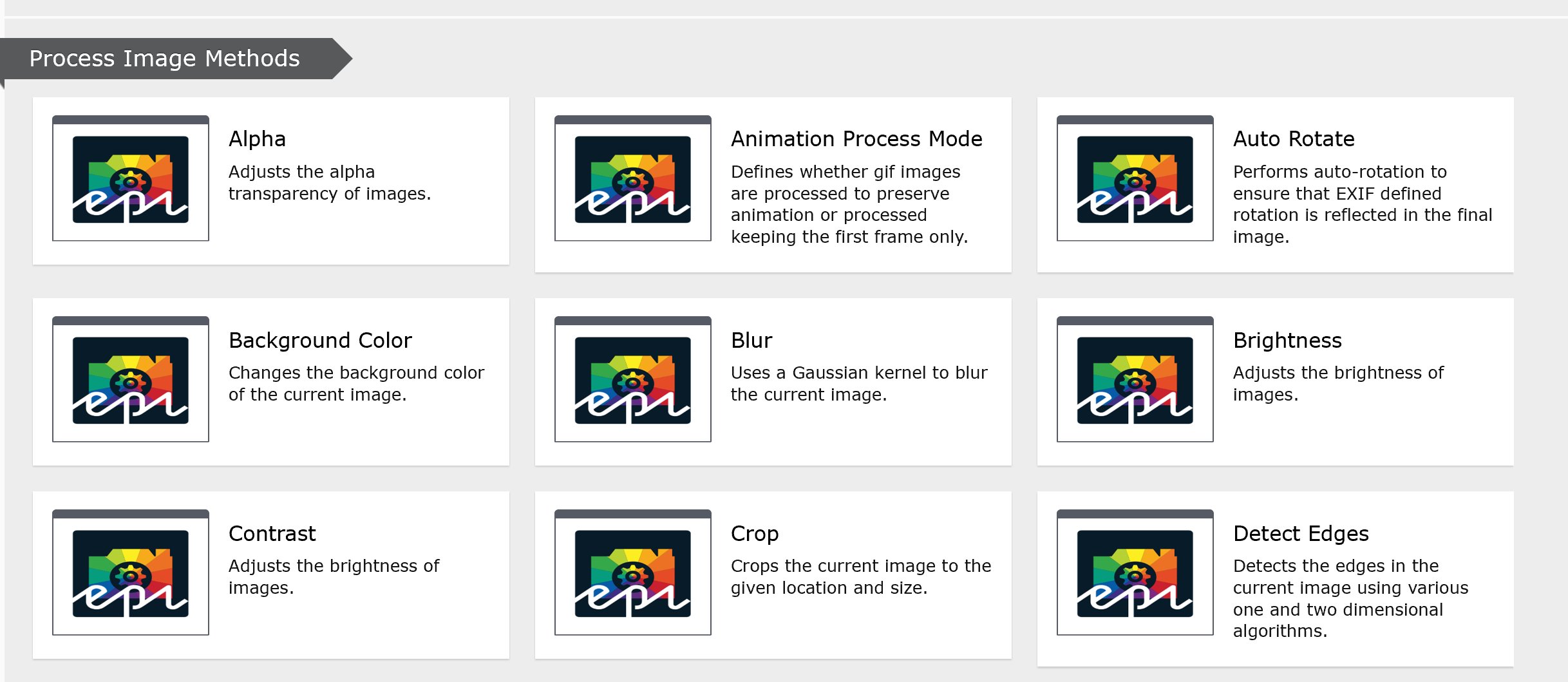 A new member has been added to the Episerver ImageProcesor family: ImageProcessor.Web.Episerver.UI. This add-on adds the Process Image Block to the site which brings all the power of the ImageProcessor library to regular editors. No longer is the manipulation of images something exclusive to developers and designers! On the block you select an image, can quickly change the width and/or height and select the processing methods that you want to apply to the image. The methods are implemented as 32(!) blocks. As each method is a block, it is possible for an editor or admin to setup a kind of 'processing presets' which can then be reused on different images throughout the site.