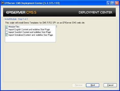 This document describes the necessary steps to install the demo templates for EPiServer CMS 5 R2 SP1. When installing the demo templates you can use the EPiServer CMS Deployment Center for an automated installation of the template files and content.
