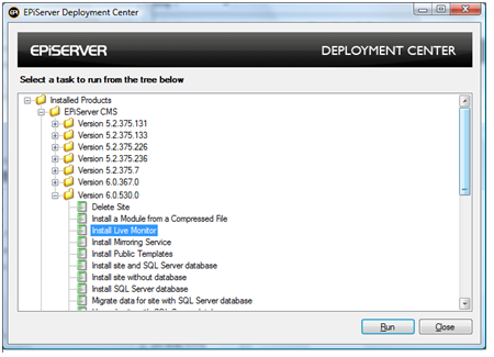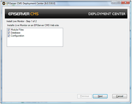 NOTE: If you plan to use Live Monitor on an EPiServer CMS 6 Demo Site, it is recommended to install the demo site first, before installing Live Monitor. The installation order for the modules are described below.
