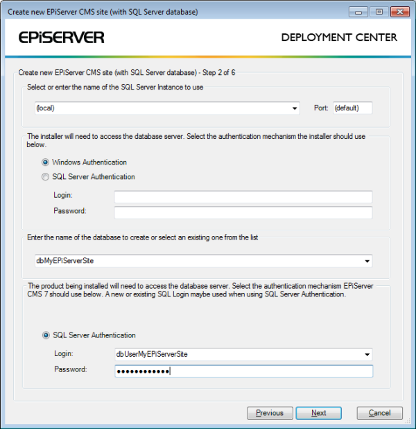 - Select an EPiServer Commerce database, note that this must have full text search.