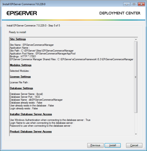 - Execute the EPiServerCommerce.msi file and let the installation finalize.