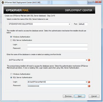 Choose this option if you wish to install a database for EPiServer Mail. The steps are identical to step 2, 3 and 6 described above in Install EPiServer Mail and SQL Server database.