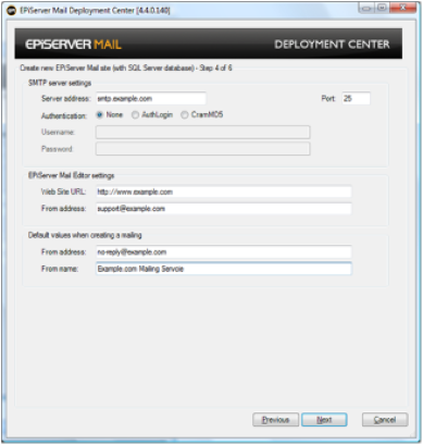 Choose this option if you wish to install EPiServer Mail without a database. The steps are identical to those described above in Install EPiServer Mail on Existing Site except for step 2.