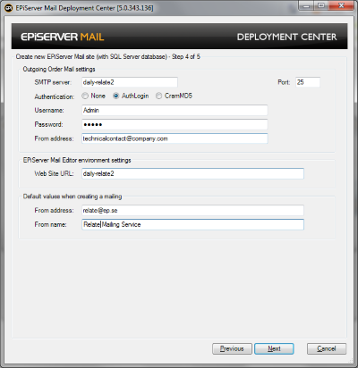 Website URL. Type the web address of the site you will be running EPiServer Mail from.