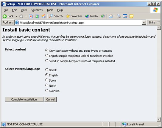 To install EPiServer CMS 5 Enterprise you need to perform a few extra actions compared to the EPiServer Professional installation.