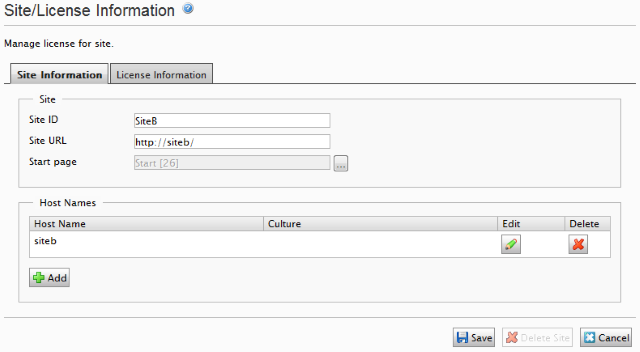 <siteHosts siteId="enterprise1">