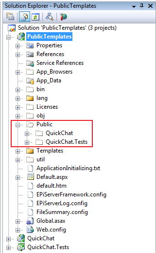 The module is created as a separate project below the “public” folder of the EPiServer site. As an alternative to creating a separate project you can add you gadget to the existing PublicTemplatest project, please see the Develop gadgets in public templates project section for more information.