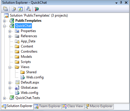 The web configuration is inherited from the public templates site but if you leave some settings in the module’s web.config you won’t kill intellisense. Copy the root web.config file (not the one in the Views folder) from the QuickChat example zip to your project.