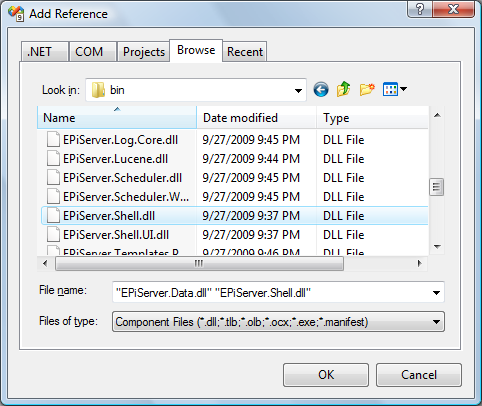 Add references to EPiServer.Shell and EPiServer.Data. You will need these later on. You can find a copy of these in the public template’s bin folder.